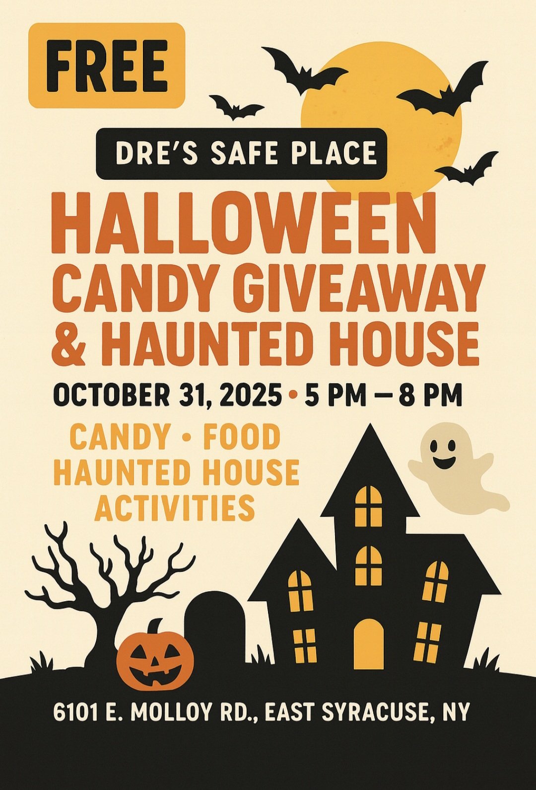 Join us at DRE’S Safe Place for a community haunted house,food & candy giveaway