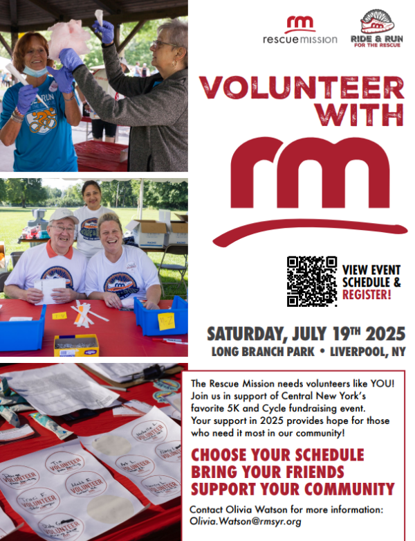 Volunteers will help our Rescue Mission Alliance team with set up for the event, staffing water stop stations along the bike routes, registration booth support for check-ins, directing traffic and assisting with parking, overseeing the family fun zone with activities, and more!